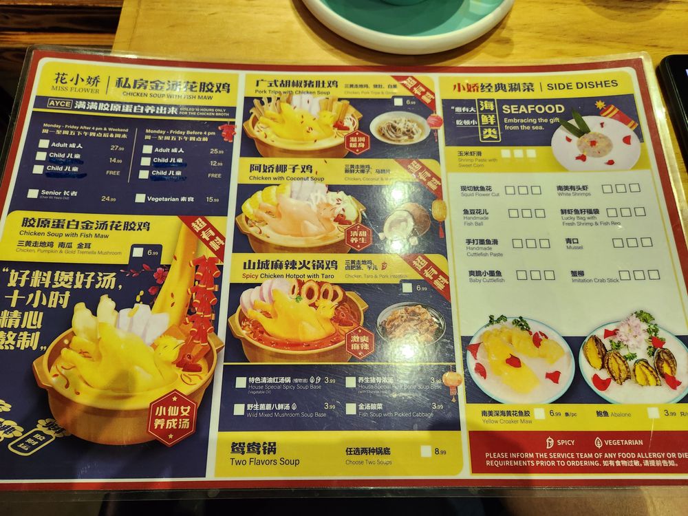 Welcome to Miss Flower Hotpot, located at 9715 Bellaire Blvd, Houston, TX. This all-you-can-eat hotpot restaurant offers a delightful culinary journey filled with a robust selection of high-quality meats and fresh vegetables. Diners can indulge in tender options like the secret-sauce chicken ($19.99), New Zealand lamb shoulder ($12.99), and premium pork belly ($4.99), along with an array of vegetables such as lotus root and crispy bamboo shoots.